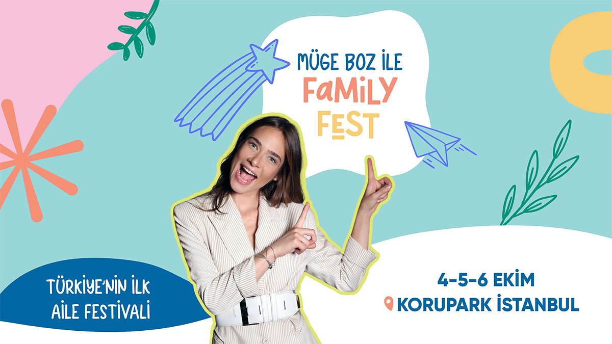 Türkiye’nin ilk aile festivali Family Fest, 4-5-6 Ekim tarihlerinde Müge Boz’un ev sahipliğinde Korupark İstanbul'da ailelerle buluşuyor. 3-12 yaş çocuklar ve ailelere yönelik düzenlenen festivalde aradığınız her şey tek bir yerde, hem de doğa içinde!